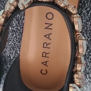 EUC Carrano Black Suede Clear Crystal Straps Gold Zipper Thong Sandals Sz 6
