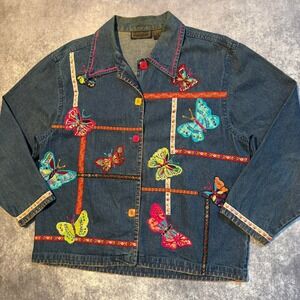 Vintage Grandma Granny Women's Denim Jacket Embroidered Butterfly Button Up L