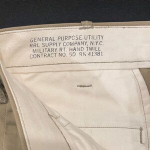 Crisp casual chinos from RRL. Worn <5x , no flaws. Heavier weight than your avg chino, has military vibes. Hope you enjoy!