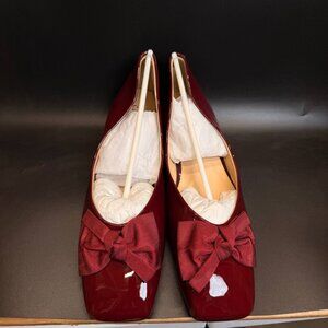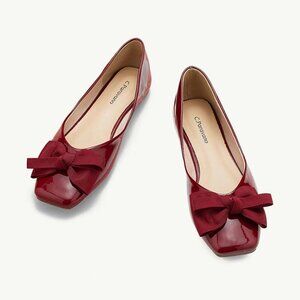 C.Paravano Women's US 7.5, 11.5 Red Eva Patent Bow Ballerina Flats Square Toe Slip On Shoes