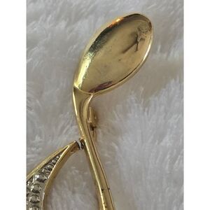 Keywords: musical note brooch, gold tone brooch, rhinestone pin, lapel pin, vintage jewelry, costume jewelry, music lover gift, elegant brooch, statement brooch, women's brooch, jewelry, brooch