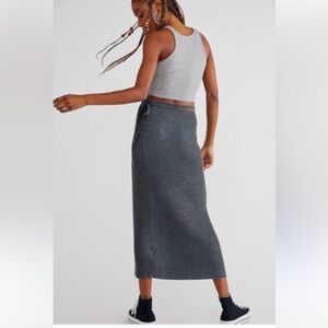 Free people borderline midi faux wrap skirt knit grey blue Small