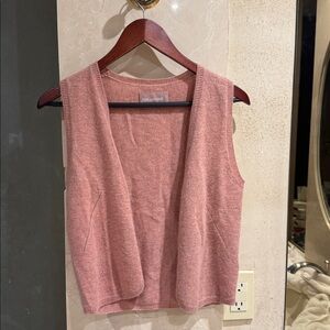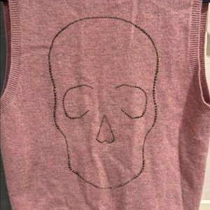 Edgy pink cashmere vest with bold skull design in the back Perfect for a chic look.