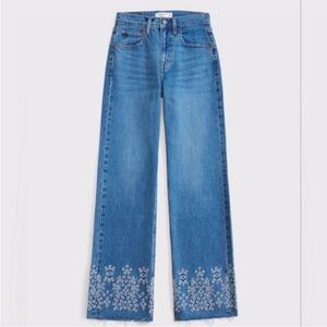 Abercrombie & Fitch Light Blue Straight Leg Jeans with White Floral Detail