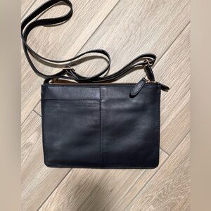 Sleek black crossbody bag with adjustable strap. Perfect for everyday use. Black leather with rose gold detailing. Used twice and just kept in storage.