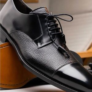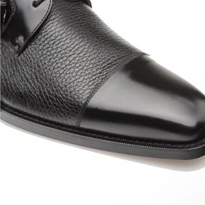 Sleek black leather oxfords by Mezlan. Perfect for formal events. Stylish and comfortable.