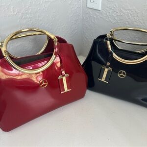 Source Unknown Red and Black Shoulder Bags with Gold Accents