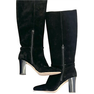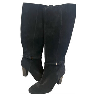 NEW ANN TAYLOR BLACK HIGH HEEL SUEDE LEATHER BUCKLE TALL KNEE HIGH BOOTS SZ 5.5