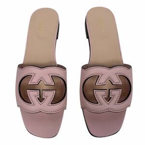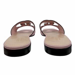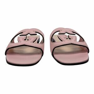 Gucci Interlocking G Cutout Leather Slide Flat Sandal Pink Women Size 37.5