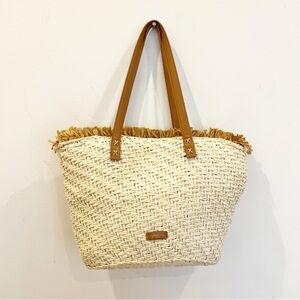 Spartina 449 Bag Womens Straw Fringe Tote Palmetto Leather Straps Beach Resort