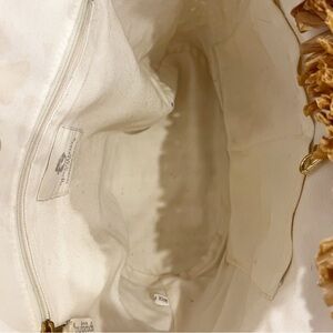 • Flaws: one place where straw is undone, a couple of stains on lining, and front along the top shows some wear. Overall the bag is in very good condition. See photos for details.