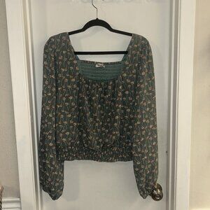Arula Smocked Green Floral Long Sleeve Coquette Peasant Cropped Blouse Size 2X