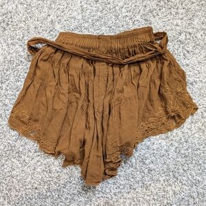 💘 FP Embroidered Lace Shorts Wrap Belt Brass Loops XS