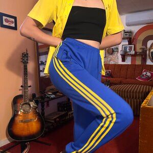 RARE 1970s Adidas Olympic Games Montreal Vintage Adidas blue and yellow adidas stirrup ankle zip sweatpants!
