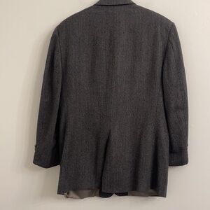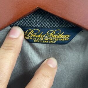 This later it's super soft is made of wool material tag has been removed. That's what it looks like the blazer has two small rips on one on the back in the other one is placed on the right shoulder since they're so tiny they are not noticeable also can be fixed if it bothers
