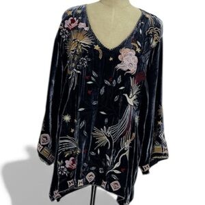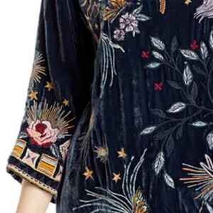 Johnny Was heavily embroidered Selah Velvet Kimono Sleeve Top In Jasper NWT RARE
