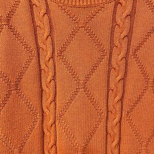The Avenue Cable Knit Fisherman Sweater in size 22/24 is a cozy and festive addition to your fall wardrobe. Made from 100% cotton with a cable-knit pattern, this sweater features a solid orange color and a relaxed fit. The long sleeves and round neckline make it perfect for casual occasions, while the roll hem accents add a touch of bohemian flair. Machine washable and heavyweight, this sweater is both breathable and warm, ideal for outdoor activities or Halloween celebrations. Perfect for the nature lover or those who enjoy a colorful, peasant-inspired look.