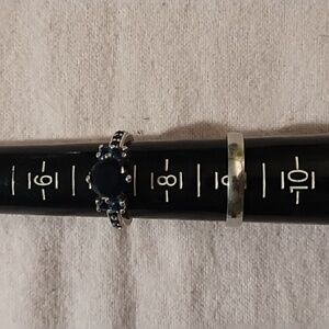 Elegant Blue Gemstone Silver Ring And Silver tone Band