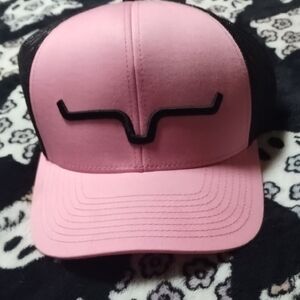 Stylish pink front with black mesh back. Iconic Kimes Ranch logo. Perfect for casual wear.