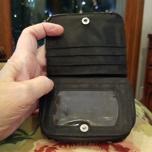 Chic wallet with leopard design. Secure zip closure. Perfect for organizing essentials.