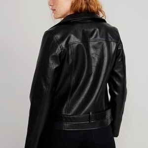Old Navy Black Faux Belted Leather Moto Jacket