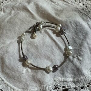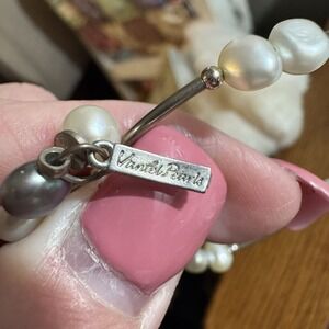 The Vantel Pearls White & Silver Wrap Bracelet is a beautiful piece of jewelry featuring a round white pearl as the main stone. The bracelet is designed with a memory wire wrap closure, making it easy to wear and adjust. It is perfect for various occasions such as birthdays, anniversaries, or everyday wear. The bracelet also includes 14 light blue pearls, adding a pop of color to the design. Signed by the brand Vantel Pearls, this adjustable and stackable piece is a lovely addition to any jewelry collection.