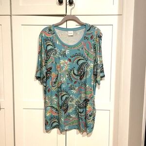 XL Blue Paisley Pattern Short Sleeve Top - German Brand Madeleine