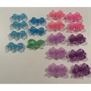 Lot of 17 vintage assorted adorable bow plastic girl's hair clips in translucent bright shades of blue, pink, purple, and green. In good working condition, snaps tight. Likely made by Goody. Check out my listings for more fun novelty vintage hair clips like these from the 80's/90's/2000's!
