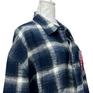 Scotch Soda Blue Plaid Cropped Flannel Top Women Sz XL Tomboy Femm Mountain Town