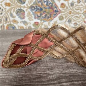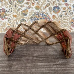 Vintage Mink Headband with Mauve/Brown Satin Lattice/Cage Design Church Plays