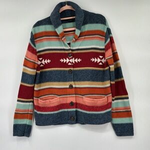Pendleton Blue and Orange Striped Sweater cardigan button down