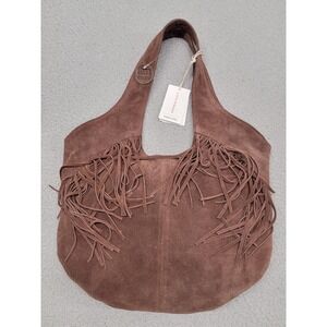 Lucky Brand Hobo Bag Womens Dark Cappucino Brown Nyra Suede Leather Fringe Tote