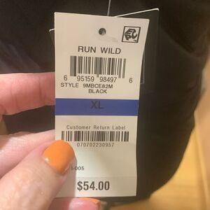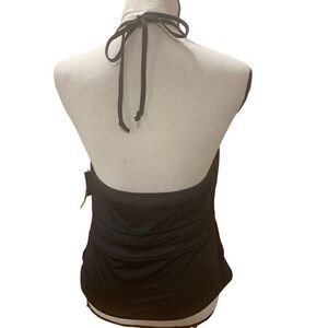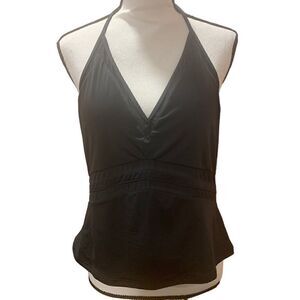 Bar lll “Run Wild” Tankini Black Mesh-Trim Stretchy Tied V-Neck Women XL NWT