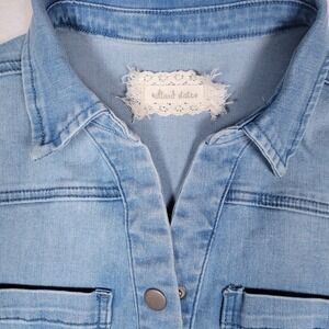 Altar'd State Denim Shorts Romper, Stretch, Light Blue, Size Medium