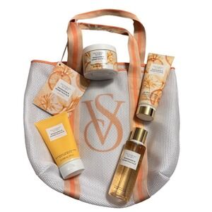 Victorias Secret Mandarin Honeysuckle Energize 5pc Body Care Set with Mesh Tote