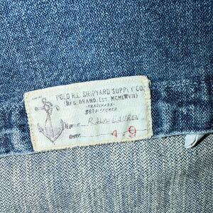 Polo by Ralph Lauren rare vintage Shipyard Supply Co dark wash denim long sleeve button up shirt anchor embroidery