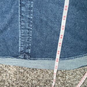 Classic denim blue button-down shirt. Features dual chest pockets. Ideal for casual wear.