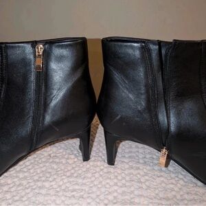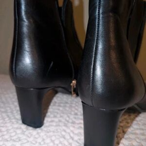 Elegant black leather boots with side zipper. Perfect for any occasion.