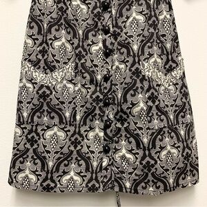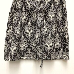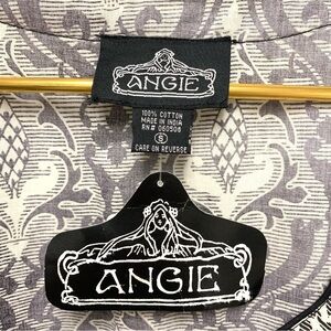 Angie Y2K Babydoll Tunic Top Size Small Black Ivory Tapestry Print Boho Cottage
