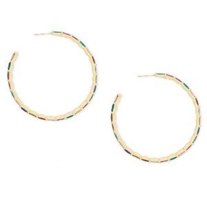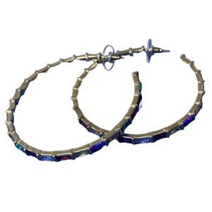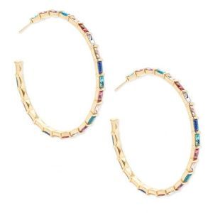 Kendra Scott Multi Color Baguette Crystal Gold Tone Hoop Statement Earrings