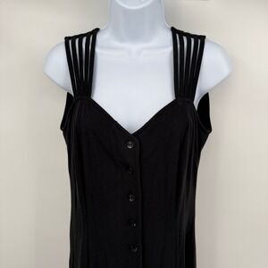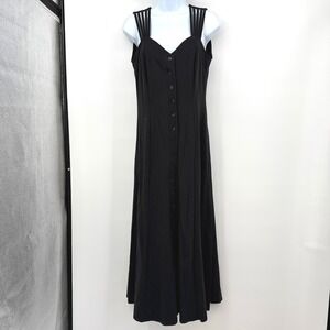 Spiegel Black Maxi Dress Sz 6 Button Front Sleeveless Y2K Goth Classic Preppy