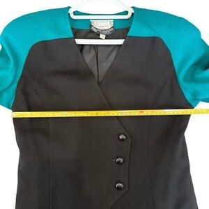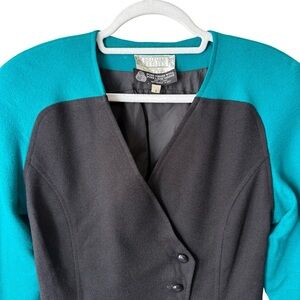 Vintage Beamer Teal and Black Women's Colorblock 80s 90s Wool Blazer Size 6P