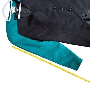 ✨ Keywords: vintage wool blazer, colorblock jacket, 80s style, teal black blazer, retro women’s jacket, structured blazer, Canadian vintage, Diana Charles, petite wool coat