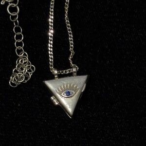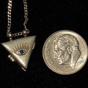 Distinctive unique vintage sterling silver 925 gold devil eye triangle locket pendant necklace with adjustable length 20”*2”. The condition and shape are preowned excellent! Adds intrigue to any look.