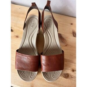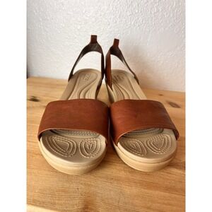 Crocs women's 10 brown Leather dual comfort sandals/espadrilles/shoes