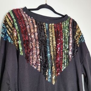 Such a fun and fabulous sweater!! Perfect for this season and into the new year!! Add a little sparkle to your wardrobe! See photos for wear.
