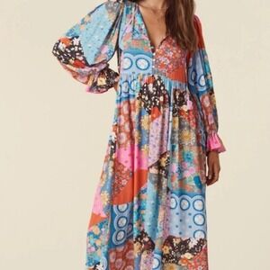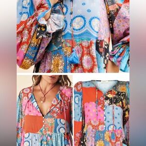 Free People Spell & the Gypsy SZ SM Collective Patchwork Cha Cha Boho Midi Dress