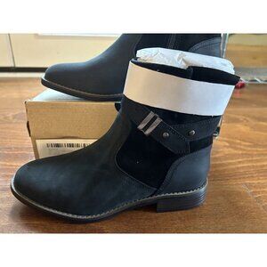 Clarks Womens Leather Boots Camzin Strap Mid-Calf Boots Black 6 W Zip NEW