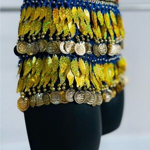 Blue with Gold leaves coins Wrap Skirt Bellydance