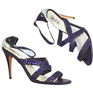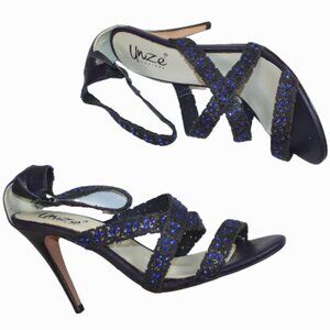 Unze Couture Crystal Embellished Midnight Blue Ankle Wrap Strappy Stiletto